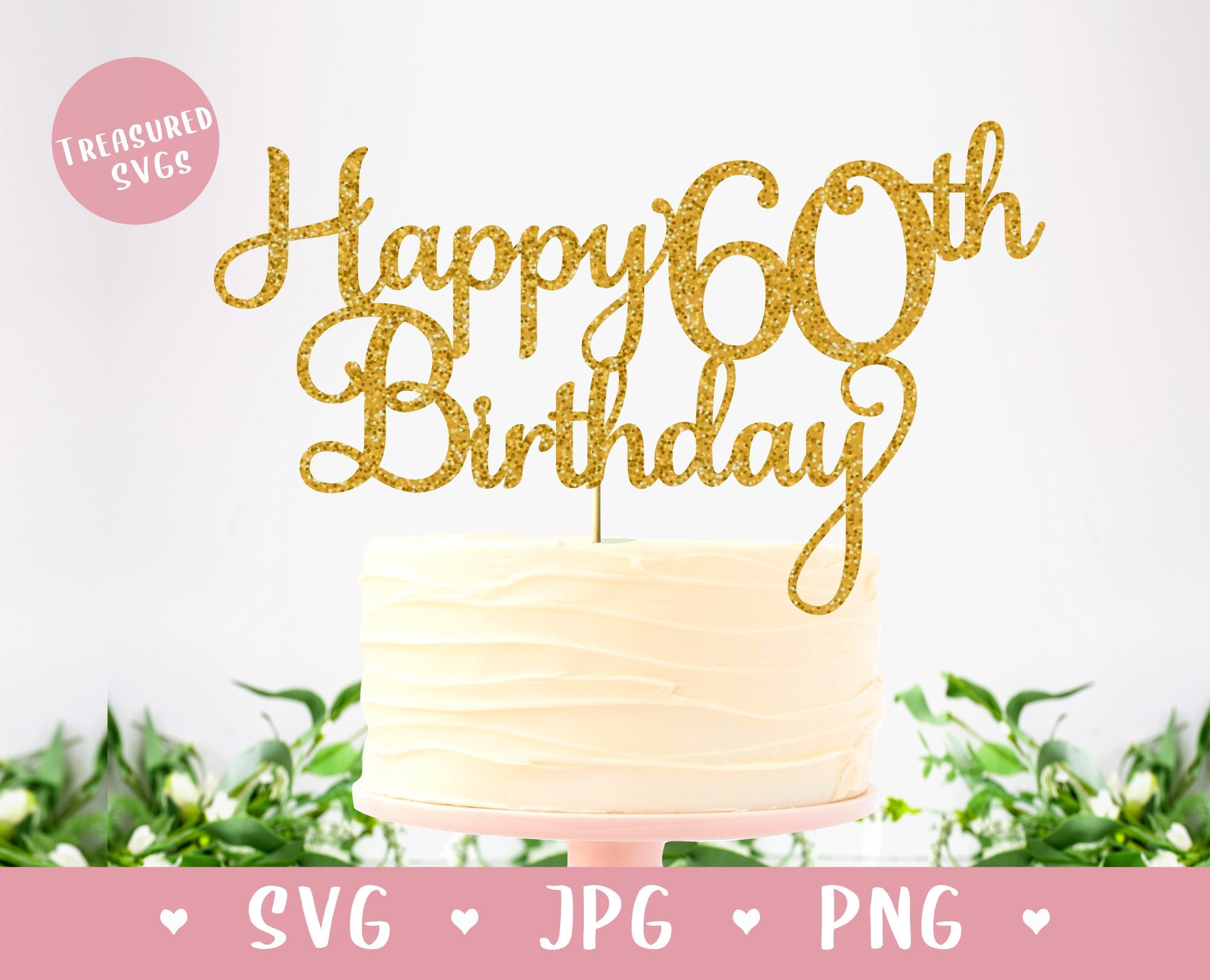 Svg Happy 60th Birthday Cake Topper Happy Birthday Cake Etsy
