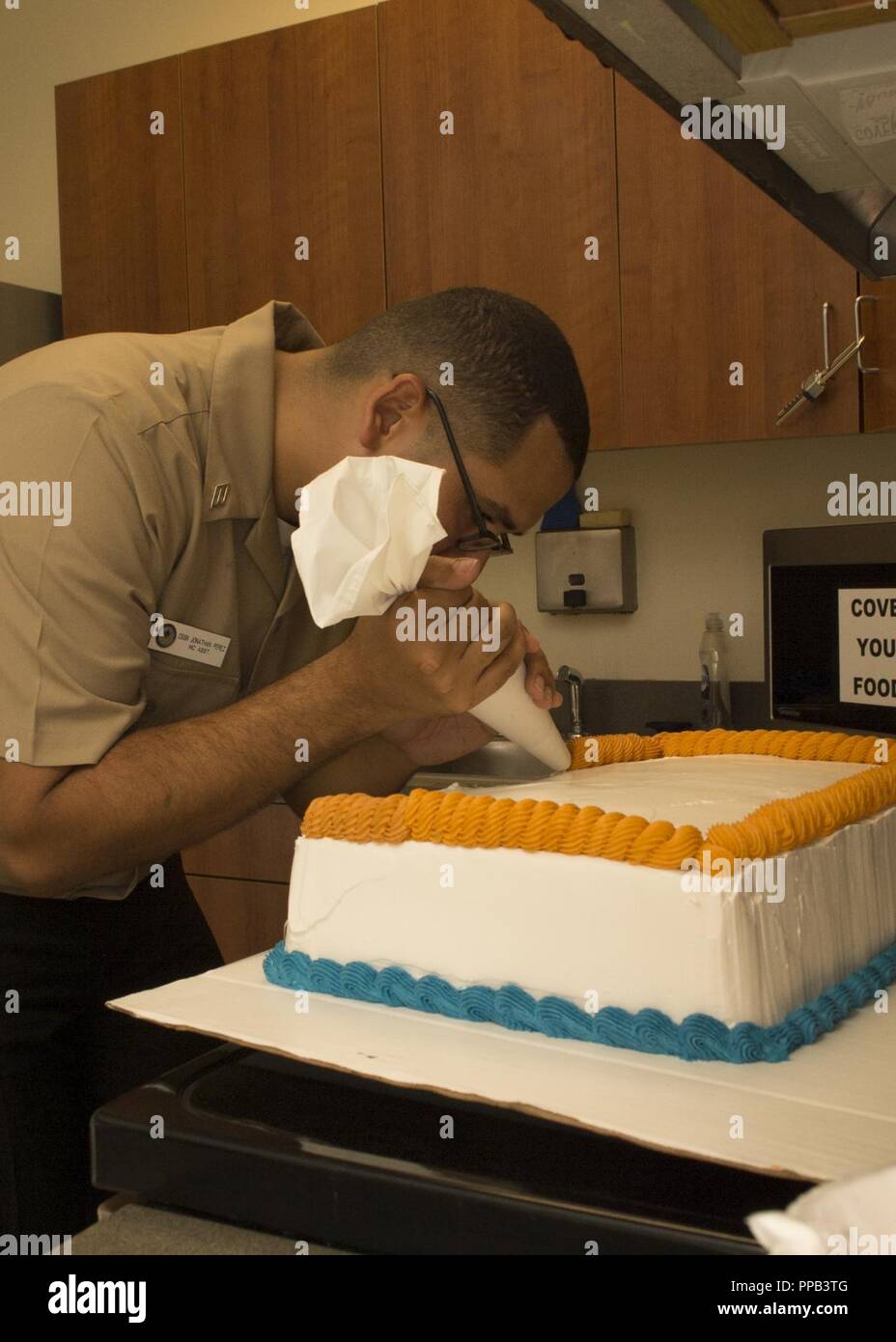 Santa Rita Guam Aug 16 2018 Culinary Specialist Seaman Jonathan Perez Decorates His First Ceremonial Cake In The Comsubron 15 Kitchen Aug 16 The Comsubron 15 Change Of Command Ceremony Is Scheduled For